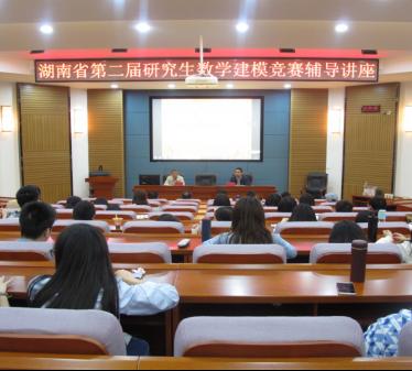 4月13日晚,乐知楼F201教室座无虚席,我校参加湖南省第二届研究生数学建模竞赛的全体指导老师、参赛队员现场聆听了湖南大学数学与计量经济学院副院长罗汉教授以“研究生数学建模竞赛典型例题剖析”为主题的辅导讲座。讲座由研究生院副院长尹碧波博士主持。