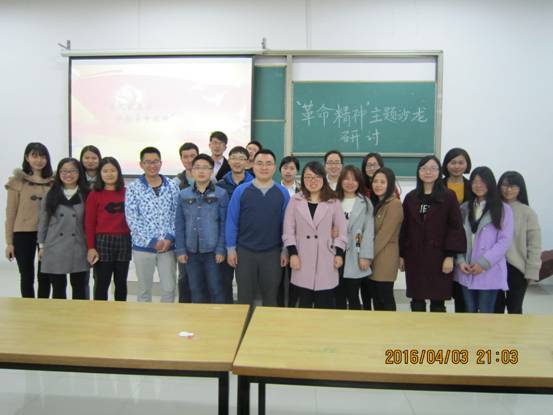 4月3日晚,“革命精神”主题沙龙研讨在岭南校区文化课104教室举行,由两位研究生党员就“什么是革命精神”、“新时期如何发扬革命精神”、“伟人事迹”等内容进行了主题分享,与会研究生党员和入党积极分子围绕“革命精神”这一主题展开了热烈的讨论。参与活动的研究生纷纷表示通过“革命精神”主题沙龙研讨,加深了对革命精神内涵的认识,明白了如何在新时期践行和弘扬革命精神。