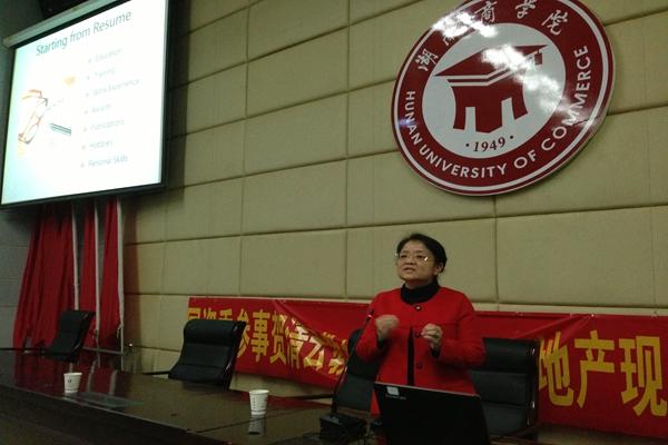 11月12日晚,加拿大归国博士、湖南中加国际学校校长梁晓在北院图书馆多功能报告厅为我院同学作题为 “如何让语言专业的大学四年更有价值”(How to Value Our University Life in Language Studies)讲座。