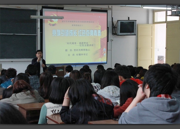 设计艺术学院学生党支部11月22日下午在教学楼C栋106教室开展了第二期&“时代箴言•紧跟党走&”红色主题讲座。讲座由设计艺术学院党总支书记杜慎仲主讲,党总支副书记李碧高主持。设计艺术学院学生工作办全体党员教师,学生党员、预备党员、入党积极分子代表听取了讲座。