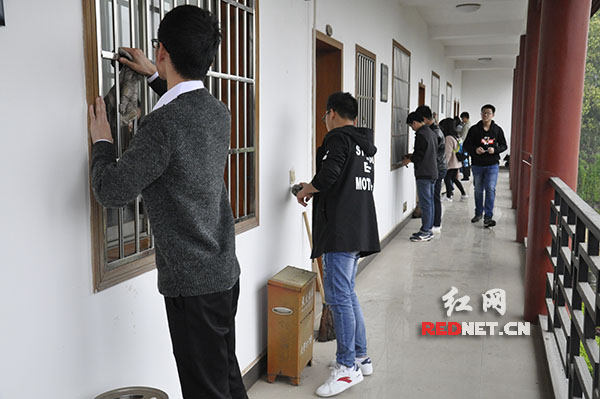 学生党员传承雷锋精神,为光荣院清扫卫生。