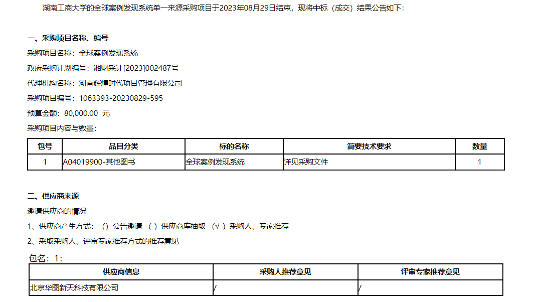 全球案例发现系统中标(成交)公告