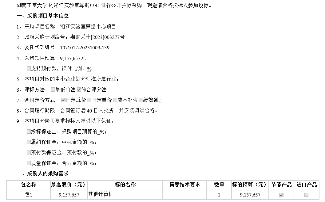 金沙js93252湘江实验室算据中心 项目公开招标公告