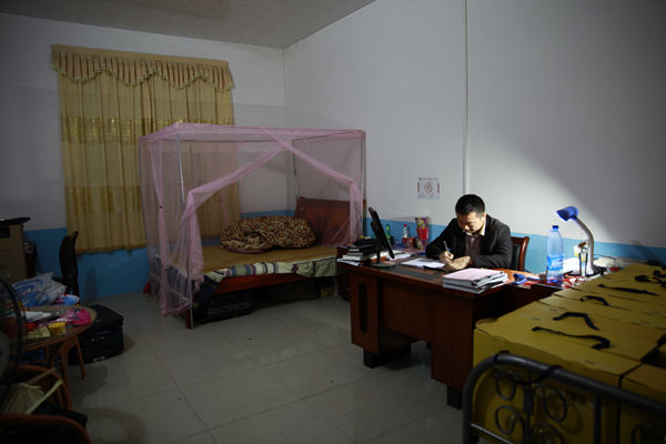 23:00,兴东村主干道的路灯已悄然熄灭,大部分村民已进入梦乡,周军军仍在伏案,在《省派驻村帮扶工作队工作日志》上记录当天的工作。(巢进文 陆艳萍)