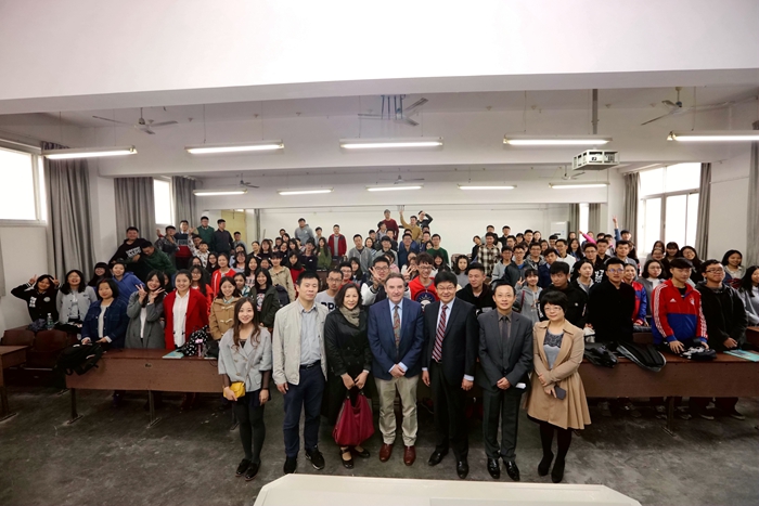 Peter John 校长对学校的热情接待与友好合作表示感谢,并介绍了西伦敦大学的概况和办学特色。他说:“为了该项目的顺利推进,你们做了大量充分的准备工作,我对该项目的顺利获批充满信心。刚才我去教室看了中美合作金融学项目的同学们,他们素质非常好,都很优秀,这也更加坚定了我对贵校合作办学项目的信心。”