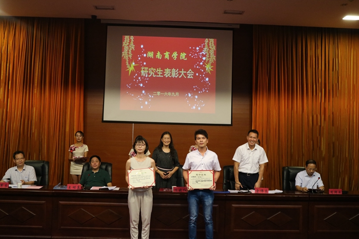 王明高副校长宣读了湖南省人民政府学位委员会《关于公布湖南省高校第二届研究生数学建模竞赛获奖名单的通知》和《关于公布“天职”杯湖南省第二届高校MPAcc企业案例大赛获奖团队和个人名单的通知》,随后,与会领导为我校获奖的研究生团队和个人以及优秀指导老师颁发了奖状。