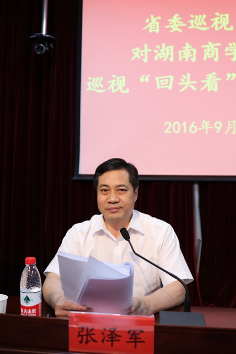 张泽军强调,省委巡视组受省委委派进行巡视监督,坚决落实政治巡视要求。做好巡视工作,是省委巡视组和学校党委共同的政治责任。希望学校广大党员干部特别是领导干部要提高认识,端正态度,敢于直面问题,切实增强接受监督的自觉性和坚定性,共同把省委交给的巡视任务完成好。