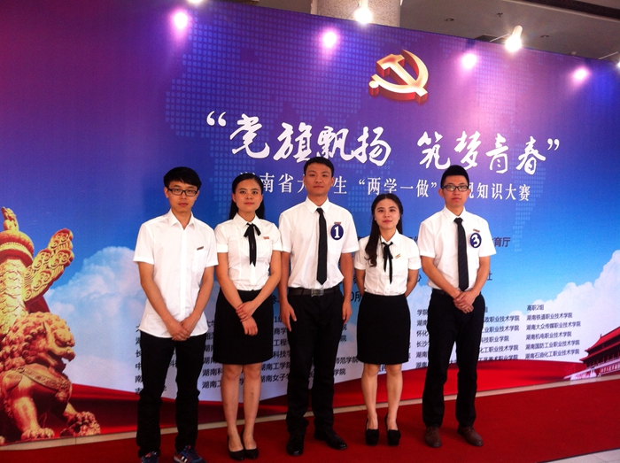 6月28日,全省大学生“两学一做”电视知识大赛在湖南教育电视台落下帷幕,我校由研究生院学生胡秀峰、宋文雅、吴文值、法学院学生杜程、会计学院学生陈怡霏组成的5人代表队,在全省40所高校中表现优异,进入前8名,并获得全省二等奖的好成绩,陈怡霏同学获得最佳风采个人奖。