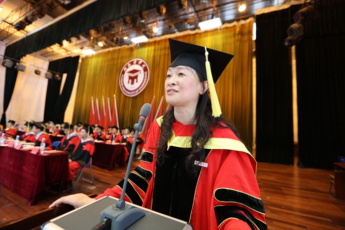 教师代表、外国语学院副院长文兰芳代表全体老师对2016届毕业生顺利完成学业表示祝贺,对即将离开母校踏上新征程的毕业生们表达了无尽的牵挂并祝福大家不枉此生,努力成就自己生命的善良与单纯,精神的高贵与丰富。