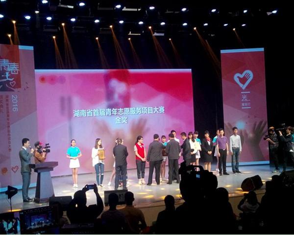 5月27日,湖南省首届青年志愿服务项目大赛在湖南省青少年活动中心圆满落幕。经过层层选拔,从全省初赛的1200多个志愿服务项目的角逐,到复赛,再到决赛的100个项目的评选,由我校团委指导、校青年志愿者协会学生实施的“守望阳光”项目在该比赛中喜获金奖。