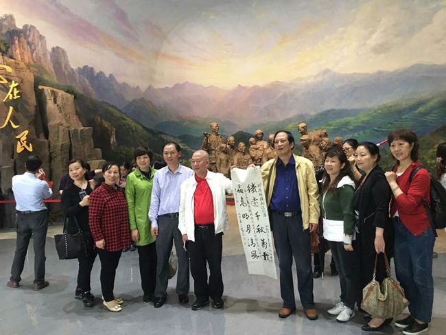 恰逢胡耀邦同志逝世27周年,全体成员参观了胡耀邦同志故居和纪念馆,深切缅怀了胡耀邦同志坎坷峥嵘、光风霁雨的一生。盟员纷纷表示胡耀邦同志的雄才大略为国家繁荣和民族复兴奠定了扎实的基础,其廉洁磊落、一心为公的工作作风是所有人学习的楷模。在参观胡耀邦同志纪念馆时,湖南省政府参事柳思维教授向纪念馆献诗《七律 胡耀邦赞》,湖南省文史馆馆员陈书良教授捐献书法对联,表达对胡耀邦同志无限的敬爱和无尽的哀思。下午,一行人还赴文家市调研学习。