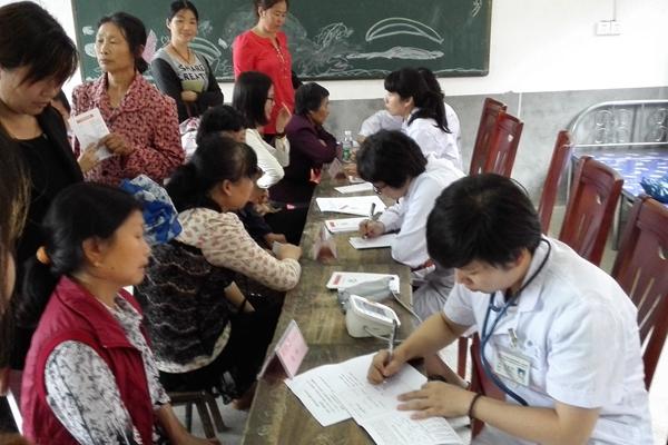 专家组义诊处设于兴家村完全小学内,利用小学简陋的校设,设置门诊接待室3间、检测室2间。义诊队成员下车后,看到大量村民在学校内外等待就诊,不顾长途舟车劳顿,简单、迅速的中餐后各就各位,第一时间投入义诊。由于前来义诊的群众远超预期,包括从其他镇和外地慕名而来的病患,在潭溪镇党委书记孙爱华、镇长何燕燕的亲自参与下,40余名镇村干部和群众担任活动志愿者,组成人墙,使整个义诊场面忙而有序。