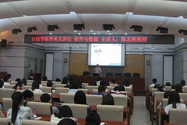 5月27日晚,中南大学软件学院院长、博士生导师、中国计算机学会(CCF)理事、CCF高级会员、教育部计算机科学与技术指导委员会委员陈志刚教授应邀在岭南校区多功能报告厅做了一场题为“软件与数据”的学术讲座。