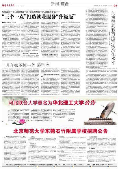 近日,《中国教育报》、红网等媒体先后发稿,报道我校毕业生就业工作。4月27日,《中国教育报》以《“三个一点”打造就业服务“升级版”》为题,介绍了我校毕业生就业工作及其取得的成果。