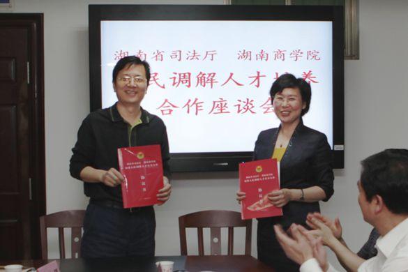 最后,谈敬纯厅长与唐未兵校长共同签署了《湖南省司法厅与湖南商学院人民调解人才培养合作协议》。(曾琦)