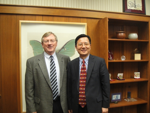 6月13日唐未兵校长与查理·艾德蒙森校长在阿尔弗雷德大学的合影
