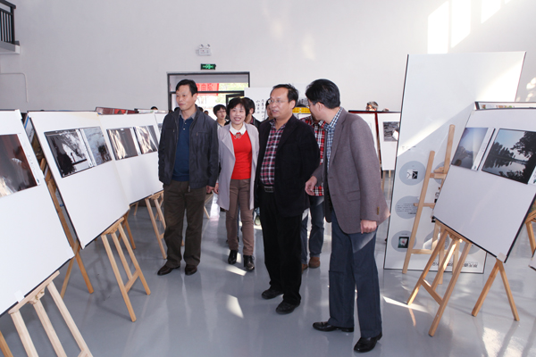 揭牌仪式举行后,副校长彭进清、刘国权一行在岭南校区教学楼大厅参观了设计艺术学院三下乡&“夜郎行旅&”摄影作品展。(文/王晓楠 摄影/陈璐明)