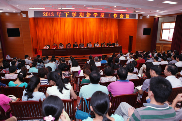 8月29日上午,我校2013年下学期新学期工作会议在图书馆多功能报告厅举行。全体校领导及全校副科级以上干部、教授、博士参加了会议。校党委书记欧阳峣主持会议并作讲话,校长唐未兵作工作报告,副校长曾伏秋就绩效工资改革工作作了说明。
