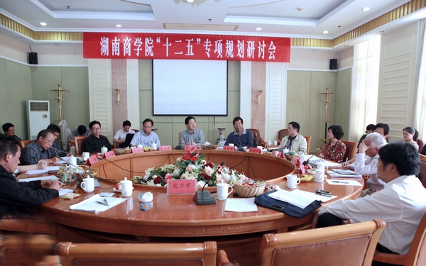 为了进一步编修完善学校&“十二五&”专项规划,5月27日,我校再次召开了&“十二五&”专项规划研讨会。校领导唐未兵、夏继春、彭进清、王明高、曾伏秋、陈丽影、聂国卿、刘国权、廖明星以及校学术委员会主任柳思维教授出席会议,会议由校党委副书记夏继春主持。各二级学院院长、相关职能部门负责人及发展规划处全体人员参加了会议。
