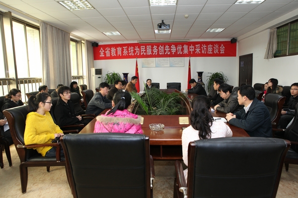 11月10日上午,全省教育系统&“为民创先争优&”集中采访活动走进我校,省内重要报纸、电视、网络媒体悉数到场,就此内容进行集中采访报道。